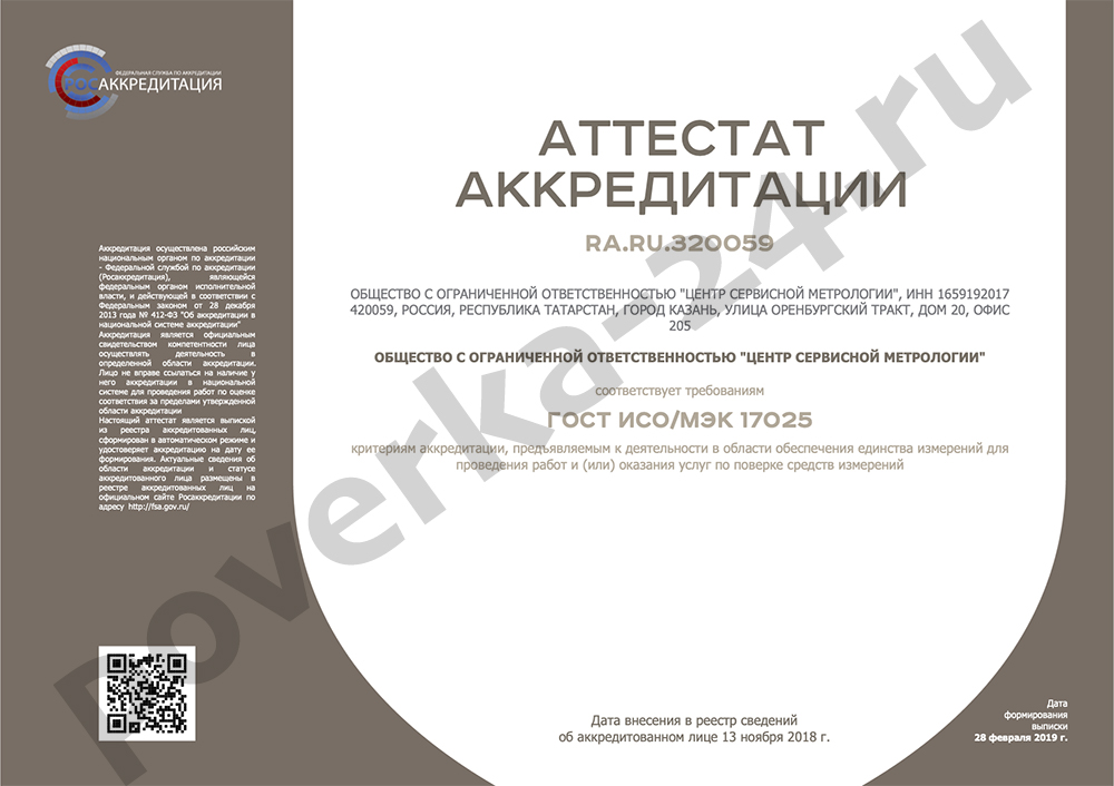 В случае успешного прохождения поверки наш специалист предоставит соответствующее официальное Свидетельство, Акт выполненных работ и договор на оказание услуг.